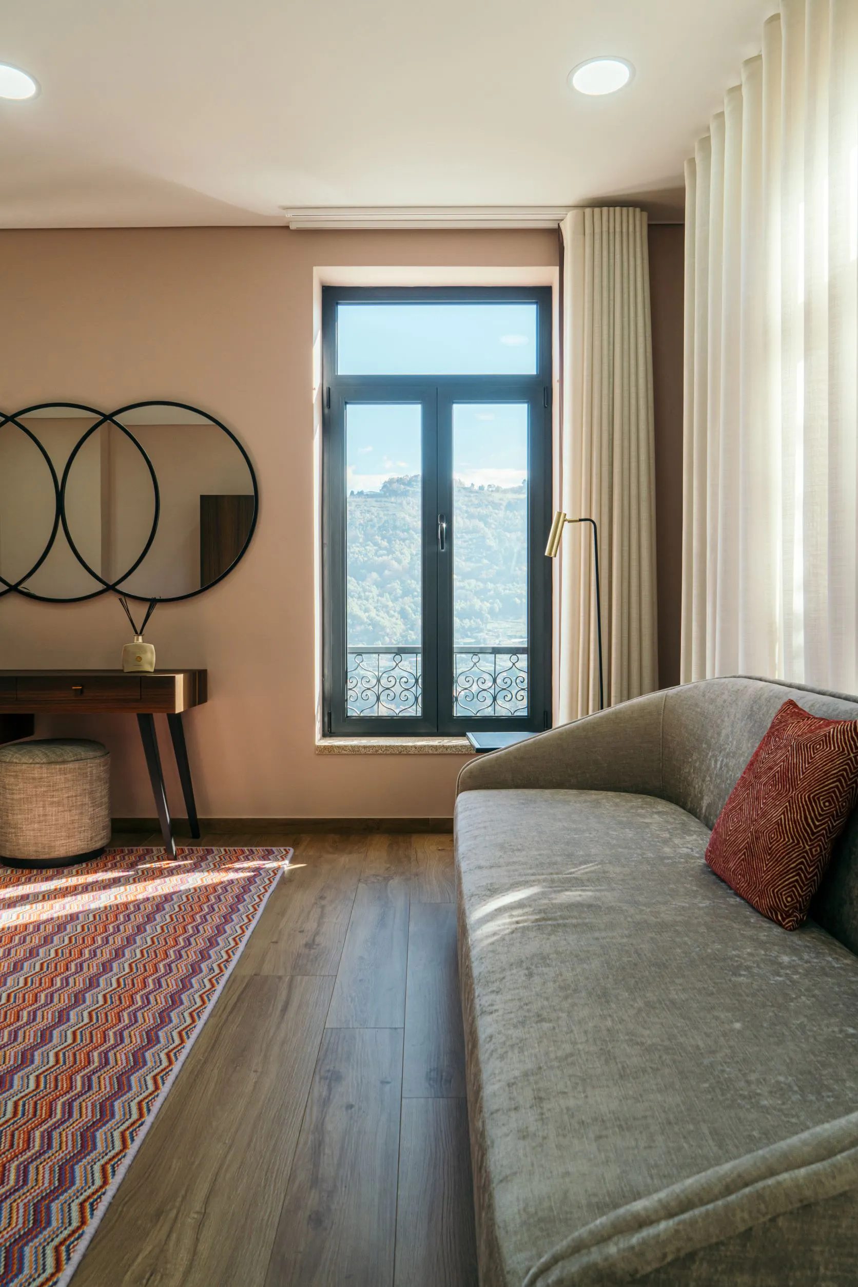 Esta Suíte, integrada na casa mãe, (do final do século XVI e princípio do século XVII), encontra-se com acesso privado, adaptado a hóspedes com mobilidade reduzida. Oferece um layout distinto, onde cria distintas experiencias com uma ramada aconchegante e romântica em plena época de uvas, a conjugar com a banheira de hidromassagem, num ambiente idílico e como pano de fundo as belas montanhas.