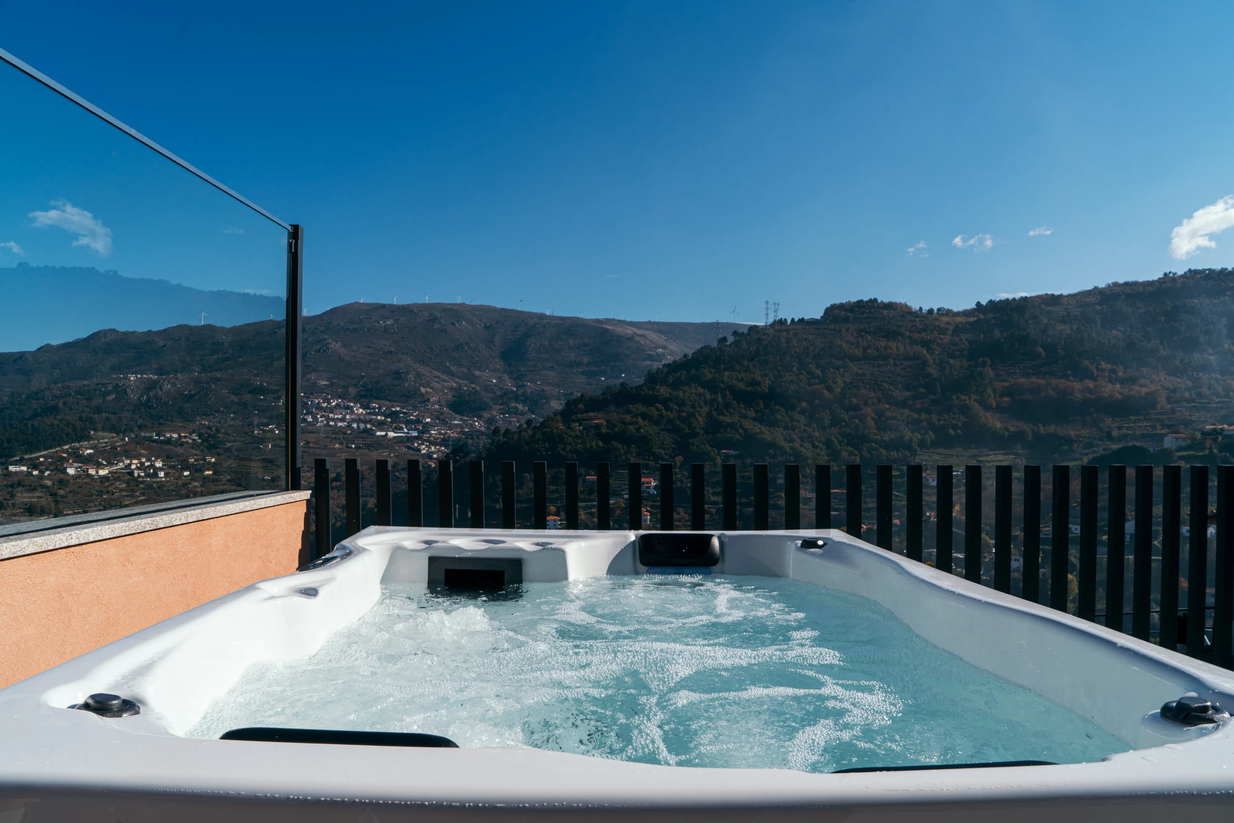 Na zona mais alta, encontramos esta Villa generosamente dimensionada e contemporânea em estilo elegante e confortável, com vistas panorâmicas privilegiadas que remontam para a tranquilidade e recolhimento das montanhas que nos seduzem e convidam em todas as épocas do ano. Apresenta um layout diferente com 82 metros quadrados com banheira de hidromassagem, banho turno, cadeiras de relaxamento e área de jantar. Com entrada exterior independente através de escadas de granito, produto endógeno do Concelho.